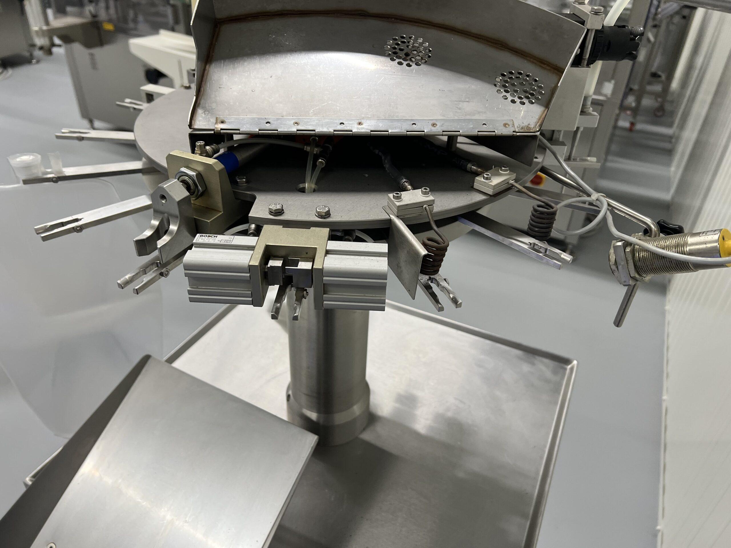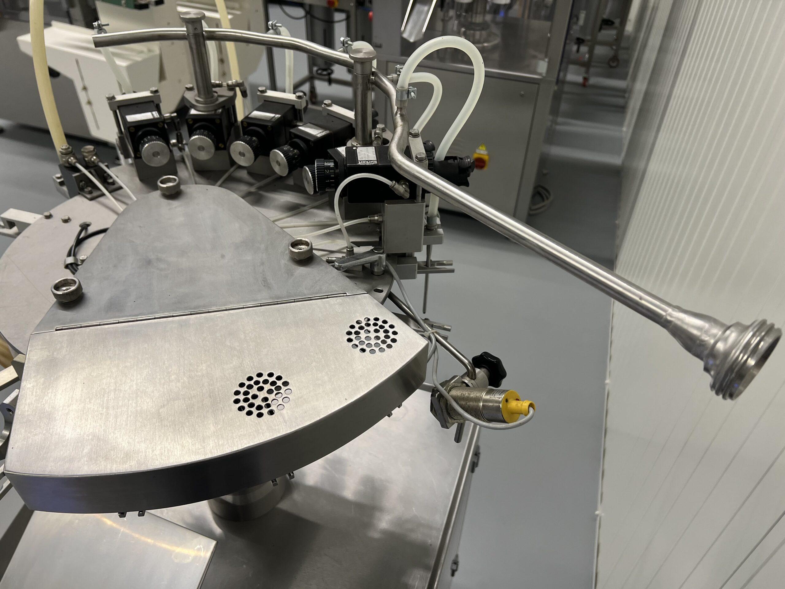 Het vullen gebeurt door overdruk op een centrale toevoerleiding en de vulstations zijn uitgerust met siraykleppen die een siliconen vulbuis afsluiten (dus geen bewegende delen die in contact komen met de vloeistof, wat gemakkelijk is voor reiniging en validatie).